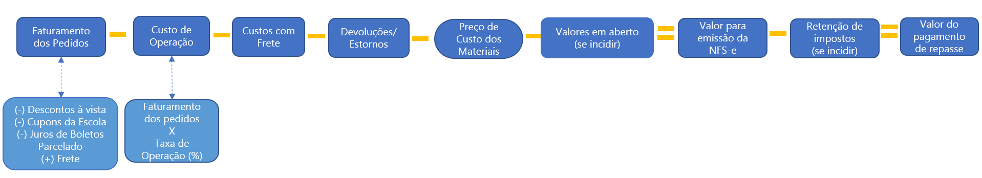 A apuração do repasse ocorre da seguinte forma: 1a Apuração: Valores recebidos do início das vendas para o respectivo ano letivo até 31/03 e o pagamento em maio do mesmo ano; 2a Apuração: Valores recebidos entre 01/04 e 31/07 e pagamento em setembro ...